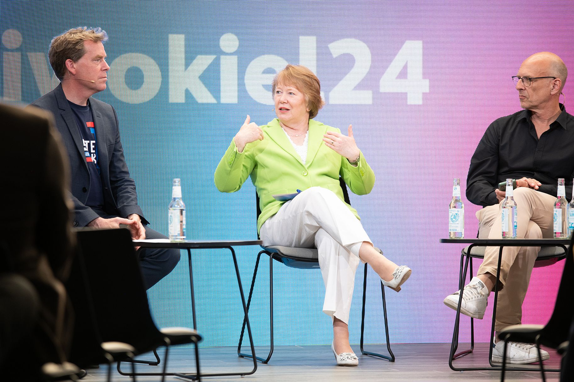 In 2023 wurde erstmalig der InnoPier im neunten und zehnten Stock des ehemaligen HSH Nordbank Gebäudes zum Hotspot der #diwokiel – mit einem Rundum-Blick über die Kieler Innenstadt. Wer nicht die Möglichkeit hatte, vor Ort dabei zu sein, konnte zahlreiche der #diwokiel-Events online im Live-Stream verfolgen und in Online-Workshops mitarbeiten und diskutieren.