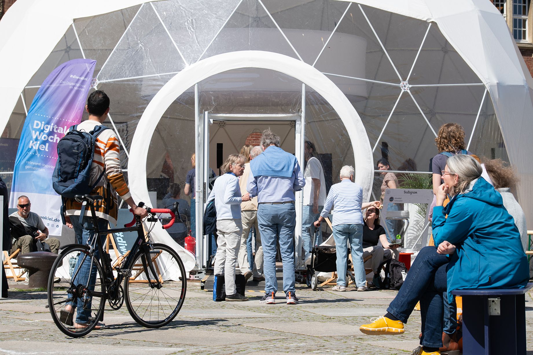 Das Areal rund um das Wissenschaftszentrum Kiel war in den ersten sechs Jahren der zentrale Ort der #diwokiel – ausgestattet mit Streaming-Bühne und Workshop-Location sowie Netzwerkangeboten mit viel Raum für Begegnung und Austausch.