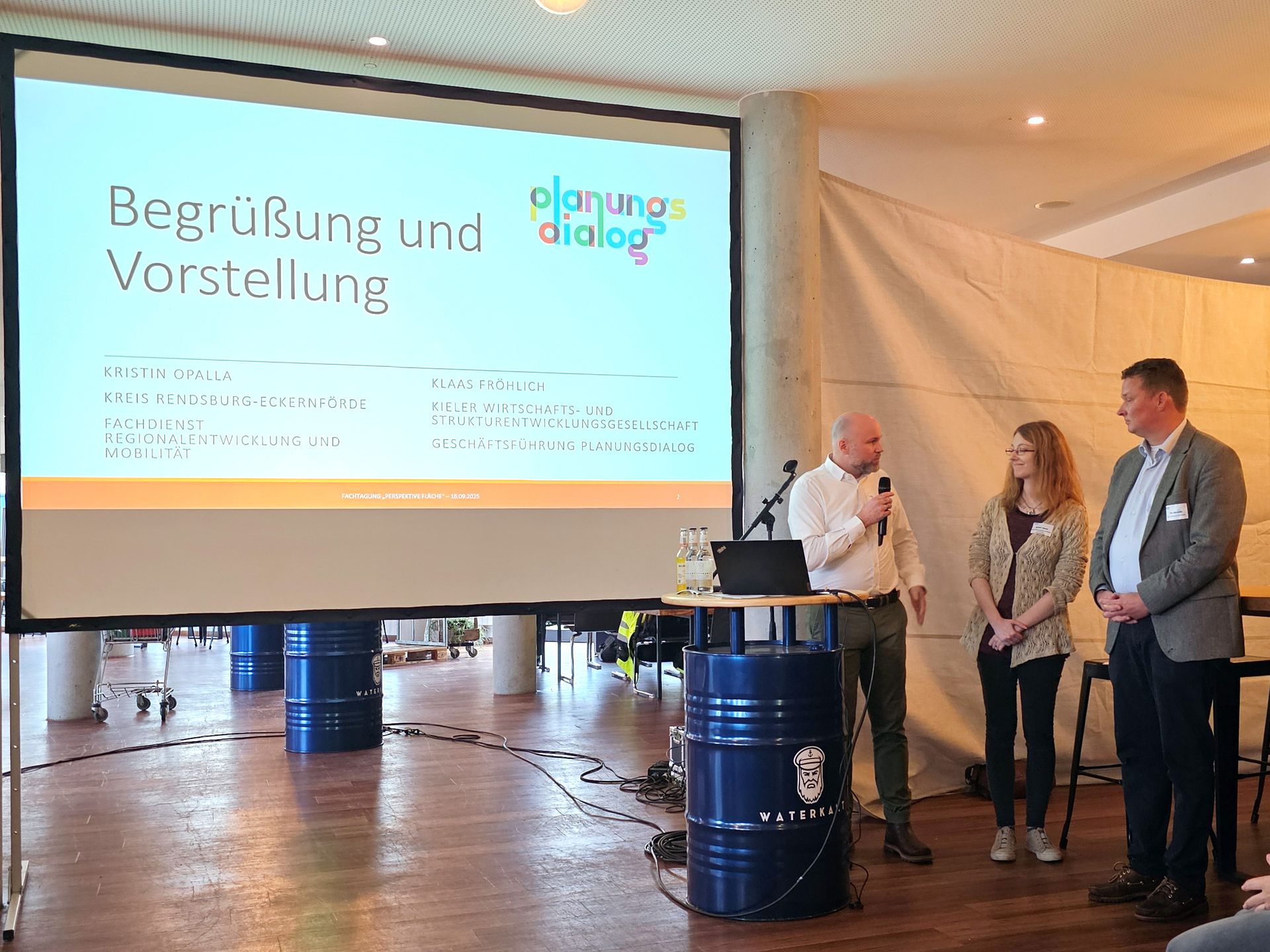 Im anschließenden Tagungsprogramm eröffnete Tim Albrecht, 1. Stellvertreter des Landrats des Kreises Rendsburg-Eckernförde, die Fachtagung. Kristin Opalla (Kreis Rendsburg-Eckernförde) und Klaas Fröhlich (Kieler Wirtschaftsförderung) stellten im Anschluss die Arbeit des Planungsdialogs vor – ein Ansatz, der auf konzeptionelle und themenbezogene Projektarbeit und fachübergreifenden Austausch setzt.