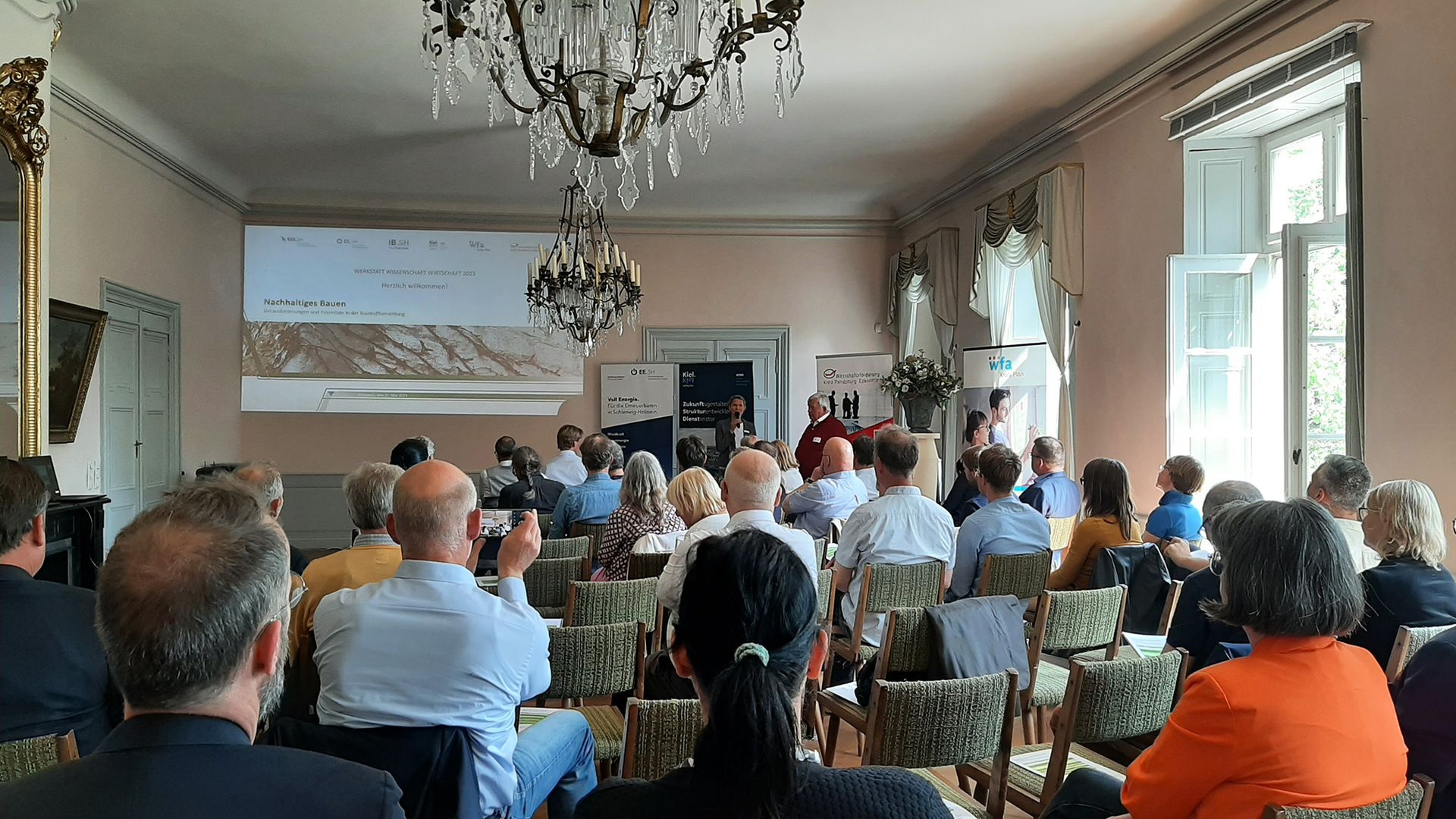 Vor diesem Hintergrund entschied sich das Team der Veranstaltungsreihe WWW Werkstatt Wissenschaft Wirtschaft, den Herausforderungen und Potentialen der Bau- und Gebäudeenergiebranche eine Veranstaltung zu widmen. Das richtige Ambiente für die Veranstaltung am 31.5.2023 fand sich im Herrenhaus Seedorf im Kreis Segeberg. Im Festsaal des Herrenhauses gab es für die Teilnehmer*innen vier Fachvorträge aus Wissenschaft und Wirtschaft und eine Führung über das Gutsgelände.